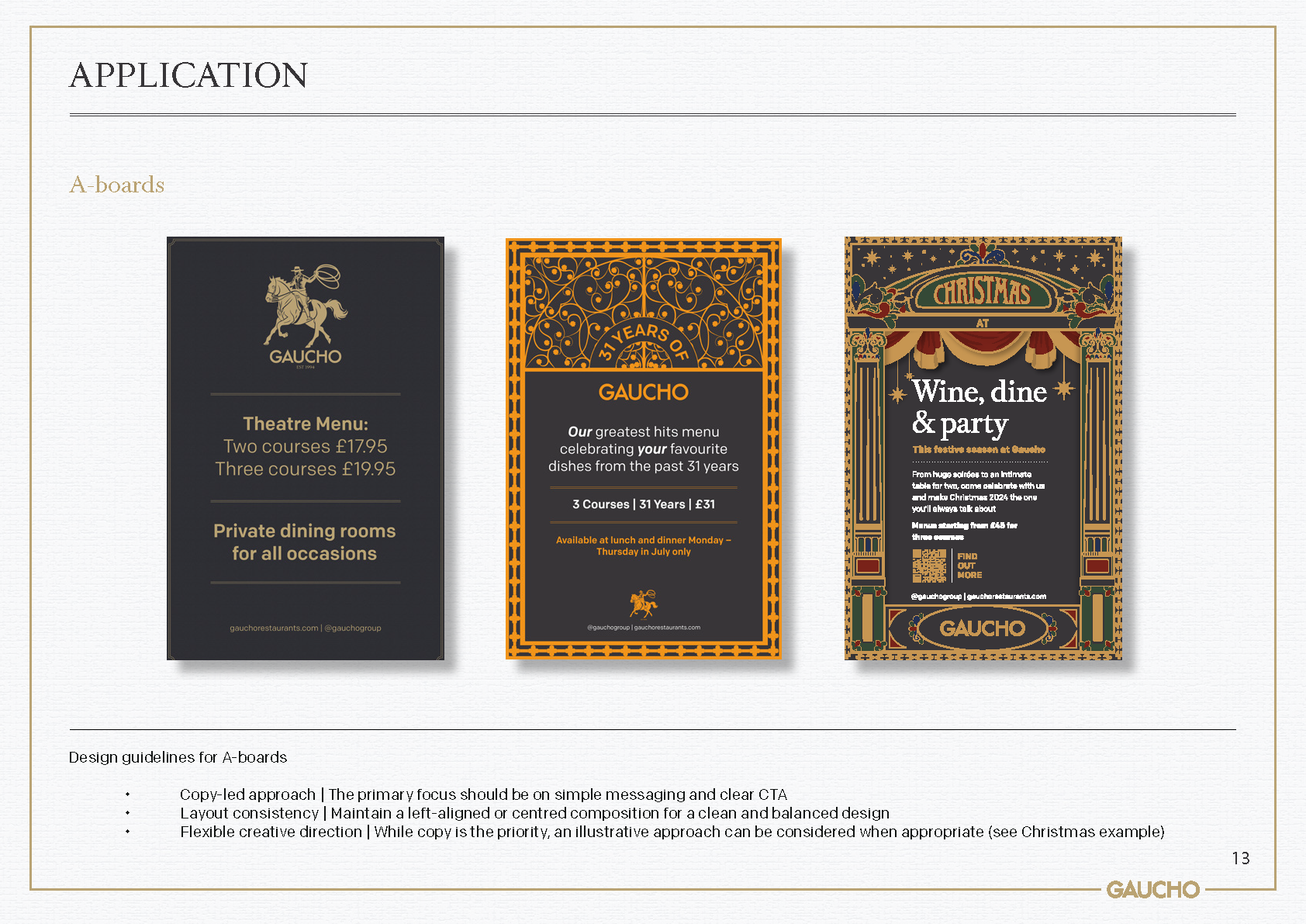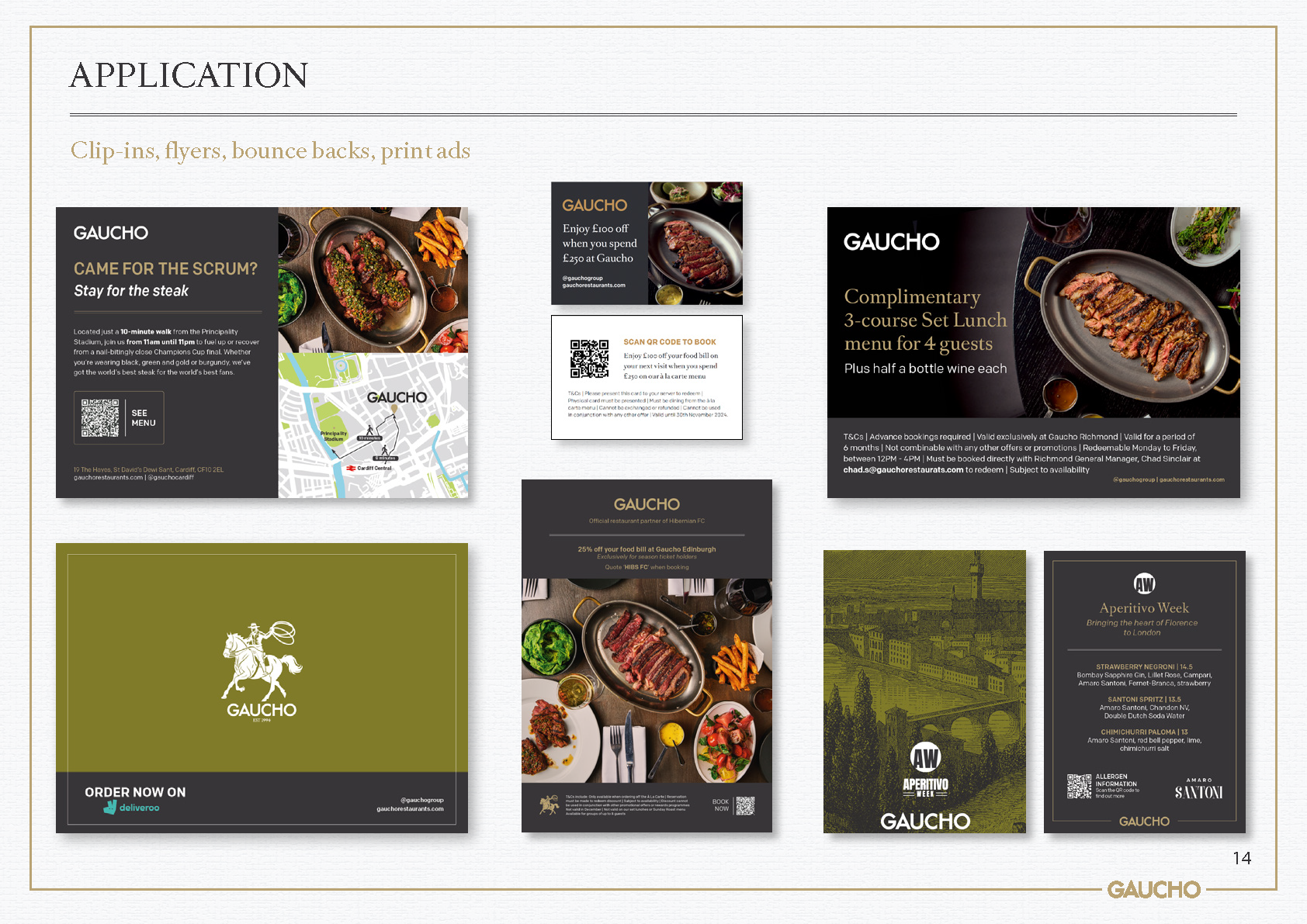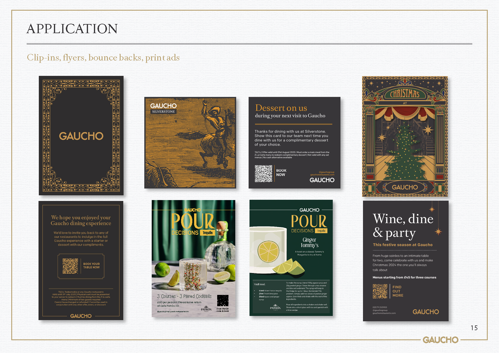 This evolution of Gaucho's branding was designed to better showcase the brand's rich heritage and improve visual storytelling. To achieve this, an illustrative logomark was created to better communicate the idea of the typical Argentinian Gaucho, a clear nod to the origin and inspiration behind the restaurant group. This was combined with a refreshed colour palette that speaks to the earthy richness and sunshine vibrancy of Argentina.