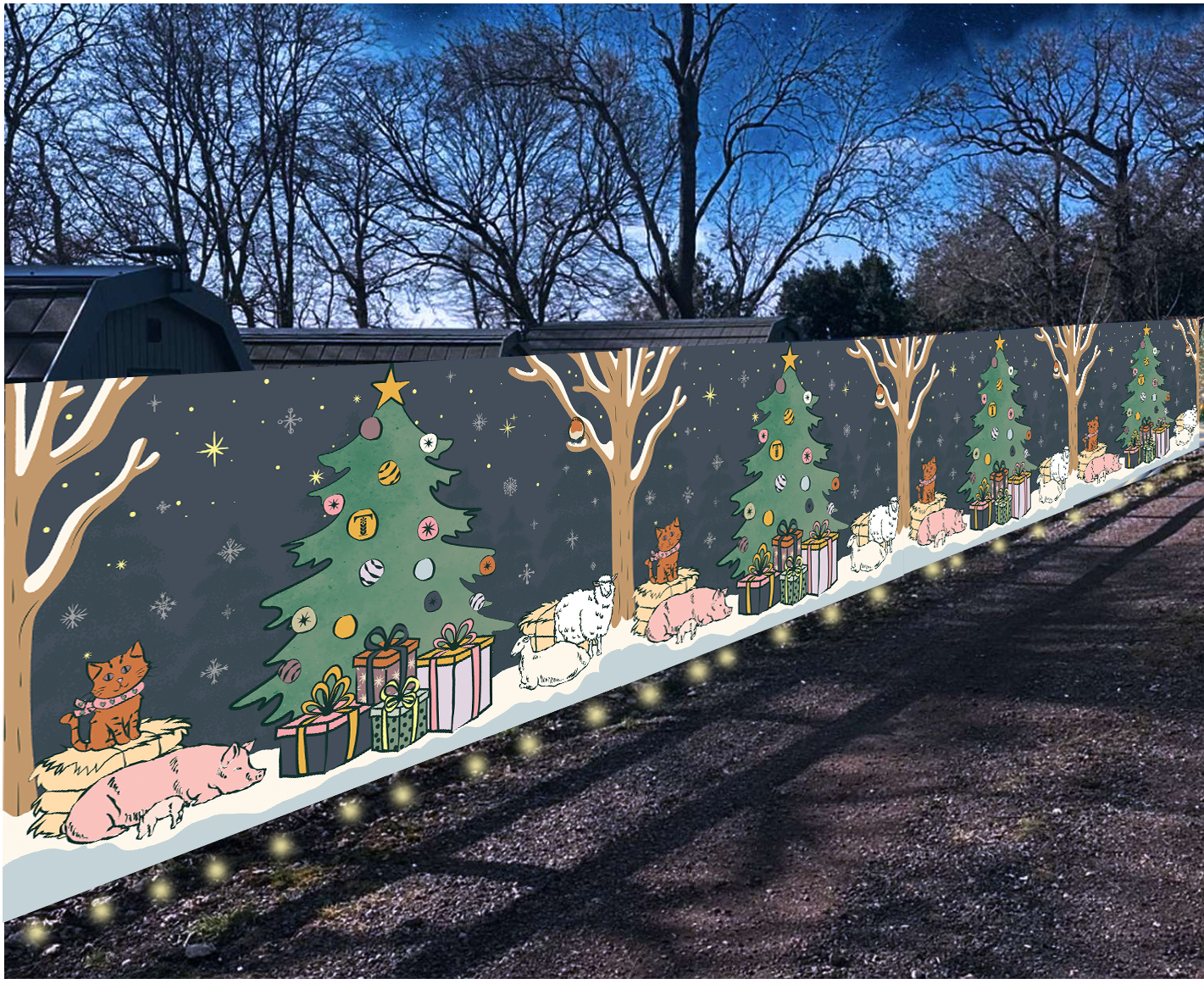 Illustrated fence covers and photo op cut out for Christmas Light Show